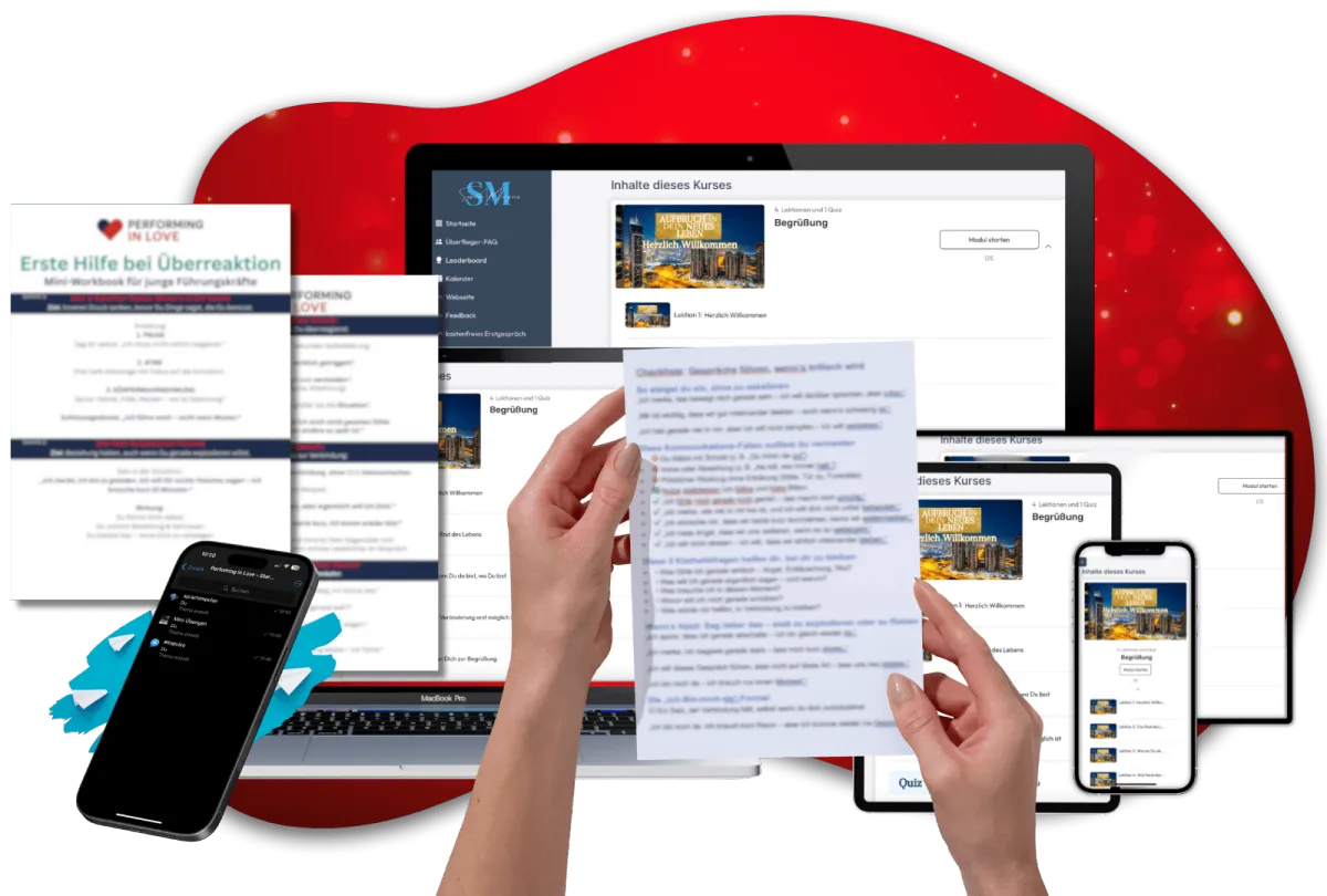 Du bekommst konkrete Strategien, um in Sekunden wieder bei Dir anzukommen damit Du als Partner dieselbe Klarheit und Kontrolle ausstrahlst wie als Leader im Job.